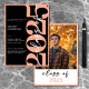 Moderno e mínimo, esse anúncio de graduação faz uma declaração combinando preto clássico e branco com acentos de pêssego. É design mínimo é um design simples e divertido para celebrar o grande evento do formando. O verso exibe a foto favorita do seu formando. Criado pela imprensa simplesmente de farmácia.
