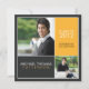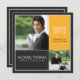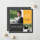 Blocos de cores modernos realçam duas fotos do seu formando. Todo o texto pode ser personalizado para ser usado como um lançamento de eventos de início (conforme mostrado) ou para ser alterado para um convite de festas, modificando o texto no verso para atender às suas necessidades.