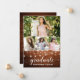 Cartão de Anúncio para Graduação de Fotografias Moderno 4 - Script de Caligrafia, Madeira Rústica e Luzes de Cordas