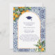 Cartão de anúncio Elegante e moderno de Graduação. Cartão azul clássico Elegante com azulejos de aquarela lindos e laranjas de citrinos.