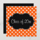 Anúncios de graduação em bolinhas laranja e preta. Um padrão de bolinhas cor de laranja e branca com acentos de preto. Um convite para a formatura feminina e moderna. Perfeito para a formatura, formandos ou festa de formatura de um segundo grau feminino!