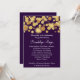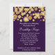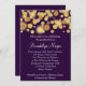 Este design na moda apresenta pontos dourados e um fundo roxo. O clima deste anúncio é de celebração e entusiasmo. Personalize este anúncio de formatura elegante com suas informações. Se você precisar de espaço para mais informações, o verso do anúncio tem bastante espaço.