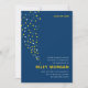 Bonés de formatura ou confete - de qualquer forma é uma maneira divertida de anunciar e celebrar seu formando. As cores do azul e do ouro com toques de branco fazem deste um anúncio divertido e espirituoso. Excelente para formandos universitários, universitários ou segundos graus com bastante espaço para informação.