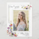 Marque sua conquista especial com este cartão com fotos com flores silvestres alegres. Personalize o cartão com 1 foto na frente e 3 fotos no verso. Você pode personalizar o texto com sua própria data, nome e detalhes na frente e no verso, você pode inserir um parágrafo curto dos seus planos de formando ou uma cotação especial.