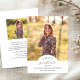 Este elegante e sofisticado anúncio de graduação com foto apresenta uma sobreposição de foto em forma arqueada em branco, juntamente com modelos de texto para personalização simples. O verso contém um modelo de 2ª foto e modelos de texto para personalização adicional, como para compartilhar os planos futuros do graduado!