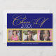 Este anúncio real de formatura em foto de ouro e azul ou amarelo ou o convite para festas de formatura é perfeito para qualquer formando da faculdade, segundo grau ou qualquer nível. O Classic design apresenta um fundo colorido elegante com design de letras em um roteiro delicioso e elegante. Muito fácil de personalizar com suas informações. Apresentem três de suas próprias fotos digitais, façam upload das fotos online. Convidado para a graduação clássico e formal para homens ou mulheres. Todos os Designs Copyright © www.CustomInvitesOnline.com