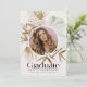 Este anúncio de formatura boho/boêmia, chico e moderno, apresenta sua foto com plantas tropicais/botânicas em tons sujos. O verso apresenta um fundo brando/bege com padrões geométricos. Personalize para suas necessidades. Você pode encontrar mais produtos correspondentes na minha loja.