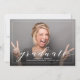 Comemore o formando com um anúncio de fotos de sangria de cheio moderno que duplica como convite de festas. Carregue a foto de formando desejada no lugar da foto de amostra mostrada no modelo fácil de usar. Edite o texto na frente e atrás com o texto desejado. Este convite/anúncio funciona bem para formandos segundos graus ou universitários. A paleta de cores neutra a torna uma boa escolha para formando masculinas ou femininas. (Observe que a foto usada neste cartão é um exemplo de foto que deve ser substituído por sua foto antes do pedido.)