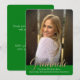 As cores da escola verde Kelly acentuaram-se com a sobreposição de escrevendo "Formando" do script de efeito de brilho dourado na sua foto de sangria de cheio na frente e detalhes importantes da casa aberta de graduação ou festa no verso. Aponta automaticamente as áreas perfeitas da foto. Formal e elegante