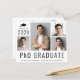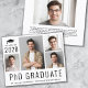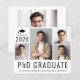 Anúncio de pós-graduação de doutorado moderno e amigável em orçamento, com 4 fotos coladas, "Formando de doutorado" escrito em letras grandes e seu ano de aula, nome e faculdade ou universidade em tipografia simples. No verso, adicione uma foto adicional e uma mensagem personalizada.