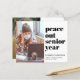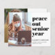 Uma classe humorística de orçamento de 2022 - cartão de anúncio de graduação para o seu formando. A frente apresenta a foto do seu formando (talvez em uma máscara ou em uma chamada de aprendizado remoto) e o "mais velho ano de paz" em uma ousada tipografia moderna, e você pode personalizar com seu nome, escola e ano de aula em uma simples tipografia. Ao contrário, adicione uma foto adicional (talvez um retrato de mais velho mais tradicional), uma mensagem de parabéns e uma mensagem mais pessoal, como seus planos futuros.