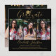 Este anúncio elegante de graduação em chic pode ser personalizado em letras douradas com suas 4 fotos de formando especial em um fundo preto. Projetado por Thisnotme©