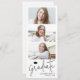 Anúncio de Graduação com script moderno preto com boné de formatura e 3 fotos, simples e divertida. Personalize-o com suas próprias fotos e informações de formando.