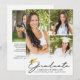 Anuncie o seu segundo grau ou formando universitário com este anúncio de design de título da tipografia de script moderno e elegante, com 5 fotos (3 na frente e 1 na parte traseira) com boné de formatura de folha de ouro falso ou sotaque de cartão. A parte de trás oferece um campo de texto para informações sobre as realizações, atividades e planos futuros do seu formando, se desejado. ASSISTÊNCIA: para obter ajuda com a modificação/personalização do design, transferir o design para outro produto ou, se você quiser coordenar itens, entre em contato com o designer ANTES DE ENCOMENDAR através da guia MENSAGEM de Bate-papo Zazzle ou envie um email para makeitaboutyoustore@gmail.com.