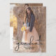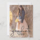 Belo jeito de anunciar sua formatura! Bonito script manuscrito sobrepõe uma foto de cheio com seu nome e classe de na frente. As costas têm espaço para as suas informações de formatura e planos futuros, bem como para uma segunda fotografia. A tendência e o estilo moderno são perfeitos para o anúncio do seu formando especial. Veja os itens de coordenação na loja Encantada Finch.