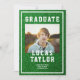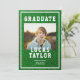 Este divertido anúncio de graduação sobre temas esportivos apresenta uma foto horizontal, a tipografia moderna e um fundo de turfe verde. Esta é uma design moderna, mas divertida. Você pode personalizar este design ainda mais adicionando outra foto ou texto adicional no verso. Veja a coleção para coordenar notas e convites de festas de graduação.
