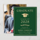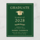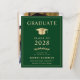 Anúncio de graduação verde elegante e acessível com boné de ouro. Personalize o nome do formando, ano de aula, escola, faculdade ou universidade, grau e grande ou honras na tipografia moderna de ouro leve. A foto do formando preenche a parte traseira da placa.