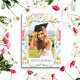 Este elegante anúncio de graduação apresenta um fundo branco com flores silvestres coloridas em aquarela. O verso apresenta um fundo creme com padrões florais em aquarela. Personalize para suas necessidades. Você pode encontrar mais produtos correspondentes na minha loja.