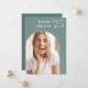 O anúncio de graduação de fotos simples e moderno apresenta uma foto vertical ou orientada a retratos em um layout único e arquivado, em um tom de fundo verde de senso de tom. O nome do formando e o ano de graduação aparecem no topo, com o nome da escola no canto inferior direito. Adicione uma mensagem pessoal ao verso, juntamente com uma foto adicional.