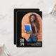 Um anúncio moderno de graduação de fotos com um design de arco em preto, cinza e branco, e espaço para uma mensagem no verso. Basta adicionar sua foto e informações, adicionar esses anúncios ao seu carrinho e informar a todos sobre essa grande conquista. Design de Natal de Anúncio de Formatação de Fotos em Arco Moderno | ©Melissa Patton - Designer