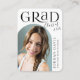 O anúncio simples de graduação em mini tamanho apresenta a fotografia moderna de tipografia e forma de arco em preto e branco, elegante e divertido, Personalize-o com a sua própria fotografia e informação de festas de formando.