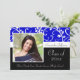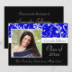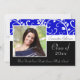 Convites à graduação com Design azul-clássico, preto-e-branco com flores e vinhas sujas fluídas. Estilo bonito, chico, delicado e feminino para qualquer garota ou formando feminino. Mostre seu estilo pessoal com este belo convite para formando fotográfico. Excelente como anúncio de graduação ou convite para festa de formatura.