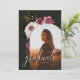 Comemore sua conquista de formando com este convite elegante e na moda. Apresentando um fundo escuro impressionante adornado com sotaques florais ricos e profundos, e um espaço arquitetado proeminente para sua foto personalizada, este design realça maravilhosamente o formando. Perfeito por anunciar sucesso e convidar os entes queridos para sua celebração. Totalmente personalizável para torná-lo exclusivamente seu.