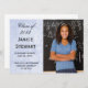 Avise a todos que se formou e o que planeja a seguir. Anúncio de graduação com sua foto e uma área de texto azul marmoreado.