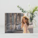 Nosso elegante anúncio de graduação de 2022 apresenta duas fotos da faculdade ou do formando segundo grau. Um roteiro branco casual e moderno aparece em uma camada junto com uma foto do formando na frente e atrás. Altere facilmente o texto no verso e na frente do cartão para fazer deste um simples anúncio de graduação ou um convite de festas de formando. Um na moda e design de graduação simples para a classe de 2022!