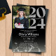 Planeje uma celebração de na moda, moda e festa de formatura elegante com este convite moderno que seus convidados adorarão. Este moderno convite elegante para a graduação em na moda apresenta uma foto vertical com o texto do roteiro do formando 2024 na frente e uma silhueta de graduação. O verso tem uma silhueta de chapéus de graduação.Envie-me uma mensagem se precisar de ajuda para a edição. você pode personalizar a cor do fundo e a fonte de acordo com o seu próprio estilo a partir da ferramenta de edição.