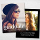 Uma opção econômica para anunciar suas conquistas de formando, este anúncio de graduação de na moda apresenta sua foto de formando, "Formando" escrito em tipografia branca moderna com linhas únicas e seu nome, ano escolar e de aula. No verso, adicione uma foto adicional e uma mensagem personalizada em uma simples tipografia branca sobre fundo preto.