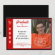 Design moderna de borda em vermelho e preto, inicia este anúncio de graduação que pode ser personalizado com sua própria foto.