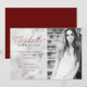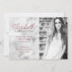 Cartões de anúncio da graduação em fotografia, bonito e modernos. Adicione uma foto vertical, retrato e tamanho a metade, com texto personalizado na outra. Pêssego e cores amarelas com texto de cinza. Adicione seu primeiro nome na fonte do script de cinza. O sobrenome impresso na laranja-coral do mar está por trás do primeiro nome. Adicione informações sobre a graduação abaixo e inclua opções de escolas universitárias e/ou informações sobre festas de formatura. O reverso é design de laranja coral.