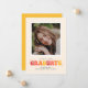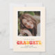 Este anúncio de graduação inspirado na diversão apresenta a palavra formando escrita em tons de rosa, laranja e amarelo. Tem espaço para uma foto na frente e atrás. O verso também inclui espaço para mais texto.