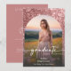 Comemore em estilo com este anúncio de glama, moderno e de graduação artística — projetado com uma sensação divertida que é tudo sobre você. Apresentando sua foto favorita em forma de arco sob uma camada ligeiramente escurecida e realçada, a frente captura seu brilho e o momento. O plano de fundo apresenta um gráfico brilhante rosa cor-de-rosa brilhante. Sacudir-o para encontrar todos os seus detalhes personalizados exibidos em um fundo cor-de-rosa rosa que seja fácil de chic. É a maneira perfeita de compartilhar suas grandes notícias com talento! Este design é o melhor que parece com fotos que incluem um fundo cor-de-rosa empoeirado, rosa, creme ou branco. Criado pela imprensa simplesmente de farmácia.