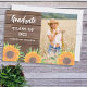 Este Cartão de Anúncio de Graduação floral é decorado com girassóis e folhagem em madeira de celeiro. Facilmente personalizável com sua foto e detalhes. Use a Ferramenta Design para alterar o tamanho, o estilo ou a cor do texto. À medida que criamos a nossa trabalho de arte, não encontraremos esta imagem exata de outros designers. Original Watercolor © Michele Davies.