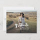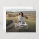 Um anúncio de graduação de 2025, moderno e elegante, com duas fotos da faculdade ou do formando segundo grau. Essa tendência e o script branco casual aparecem em uma sobreposição. Adicione as fotos do formando na frente e no verso e edite o texto na parte traseira para fazer deste cartão um simples anúncio de graduação ou um convite de festas de formando.