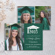 Cartão de anúncio de 3 fotos para formandos universitários/universitários, verde e branco moderno. A personalização permite adicionar fotos e texto e/ou alterar a cor do cartão. Entre em contato comigo para obter assistência com suas personalizações ou para solicitar produtos correspondentes ou coordenadores.