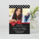 Convites para Anúncio de Graduação de Fotos do Arco Vermelho. Um padrão de bolinhas na moda preto e branco com uma ilustração de fita vermelha. Perfeito para a graduação, formandos ou festa de formatura de um segundo grau! Designs são ilustrações/gráficos impressos em formato plano - NÃO É VERDADEIRO. Para redimensionar e posicionar sua foto, clique no botão "PERSONALIZAR TI".