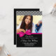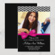 Anúncios de Formatação de Fotos em Chevron Rosa. Um padrão chevron na moda preto e branco com uma ilustração de fita rosa-quente. Moderno e bonito. Perfeito para a graduação, formandos ou festa de formatura de um segundo grau! Designs são ilustrações/gráficos impressos em formato plano - NÃO É VERDADEIRO. Para redimensionar e posicionar sua foto, clique no botão "PERSONALIZAR TI".