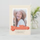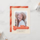 Este anúncio de graduação de fotos de solteiros divertidos apresenta a palavra formando escrita em um roteiro de estilo retrô em tons de coral. A parte traseira da placa tem um padrão de faixa diagonal de coordenação de cor.