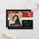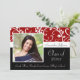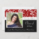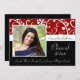 Convites à graduação com Design vermelho-clássico, preto-e-branco, com flores e vinhas sujas e correntes. Estilo bonito, chico, delicado e feminino para qualquer garota ou formando feminino. Mostre seu estilo pessoal com este belo convite para formando fotográfico. Excelente como anúncio de graduação ou convite para festa de formatura.