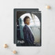 Um anúncio de graduação de fotos de doutorado com design de arco em cinza e branco com espaço para uma mensagem no verso. Basta adicionar sua foto e informações, adicionar esses anúncios ao seu carrinho e informar a todos sobre essa grande conquista. Design de Natal de Anúncio de PhD de Foto | ©Melissa Patton