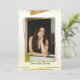 Simples e na moda, este design de quadro artístico de ouro giro apresenta um gole amarelo com tinta dourada e brilho. Uma forma excelente de anunciar a formatura de qualquer estudante a amigos e familiares. Também pode ser usada para aniversário, quinceanera, chás de fraldas e qualquer outra celebração.