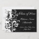 Graduação ou convite de festas chic e elegante apresenta fundo preto com espirais e rolhas ricos de enrolação branca. Um estilo bonito, feminino, mas clássico e formal de convite. O preto e branco de alto contraste acrescenta o toque perfeito para o formando feminino de qualquer classe ou ano.