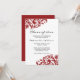 Uma decoração elegante de espiral vermelha é apresentada neste convite para apresentação de 4,5" x 6,25". Perfeito para a graduação, formandos ou festa de formatura de um segundo grau! Ilustração por © Mujka Design
