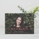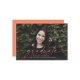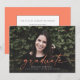 Este anúncio de graduação de fotos sombrias do cheio apresenta a palavra "formando" escrita em roteiros de coral na frente. Tem espaço para o nome do formando, ano de aula e escola. A parte traseira do cartão pode ser usada para uma mensagem pessoal ou para os detalhes do convite de festa de formatura.