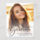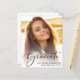 Uma opção favorável ao orçamento para anunciar as conquistas do seu formando. Este anúncio de graduação em na moda apresenta sua foto favorita com "Formando" colocado no topo em um roteiro elegante. Adicione seu nome, escola e ano de aula. No verso, adicione uma fotografia adicional e uma mensagem personalizada.