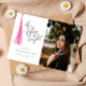 Cartão de anúncio de formatura moderna e caprichosa, com ilustração de uma tassel cor-de-rosa com um texto de tipografia manuscrito que diz "o futuro é brilhante".