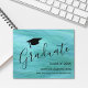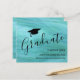 Este anúncio de graduação moderno apresenta um boné de formatura sobre um fundo turquesa. Personalize com seu nome, escola e ano.
